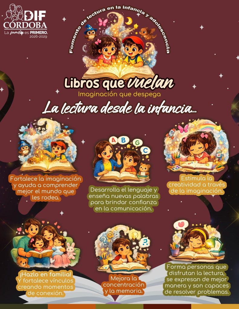 En Córdoba hoy más que nunca se busca despertar los sueños de cada niña y niño. Por ello, el Sistema Municipal DIF te invita a sumarte a la campaña de fomento a la lectura, “Libros que vuelan: imaginación que despega”, una invitación abierta a la ciudadanía para compartir historias que transformen vidas en el marco del mes de la niñez.